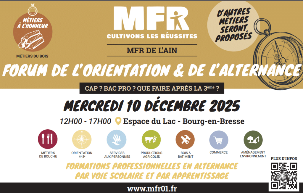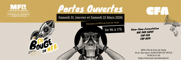 Très bon établissementPublié sur Anthony Corretel11. Janvier, 2024. Un corps enseignant très impliqué et à l’écoute des jeunes, une vrai notion de partenariat entre les élèves et les professeurs/educateurs/et la direction. Un modèle porté par le ministère de l’agriculture dont devrait s’inspirer l’éducation nationale. Une importance donnée au savoir être des enfants plus qu’au savoir faire, c’est par l’entraide que tous réussissent. Bleufé . Grégory et Virginie Clément parents de ZoéPublié sur Grégory CLEMENT10. Janvier, 2024. Super esprit de famille ou règne la bonne humeur et la bienveillance dont nos enfants ont besoin 😊Publié sur Sylvain Gleitz10. Janvier, 2024. Formateur à l'écoute l'alternance école stage permet à l'élève de savoir ce qu'ils veulent faire plus tard 😉une directrice au top😉Publié sur Fabienne Chapuis10. Janvier, 2024. Super établissement . Personnel encadrant très à l'écoute. Mon fils est métamorphosé depuis sa rentrée pour sa 3 ème en MFR . Il avait quelques difficultées en parcours standard, et n'étais pas intéressé par l'école . Nous avons alors opté pour la MFR de Pont de Veyle pour l'aider et depuis nous avons constaté un changement radical. Il aime l'ambiance familiale, les aides proposées, le travail en petit groupe , même l'internat qui a était une grosse étape pour nous . Il a tous de suite adhéré. Et c'est notes s'en font ressentir .Publié sur Angélique Gris10. Janvier, 2024. Les élèves sont très bien encadrés et suivis par leurs moniteurs et la direction. L'établissement est parfaitement adapté aux besoins de l'enseignement professionnel, tant par les encadrants que par les moyens mis à disposition. Je recommande cet établissement.Publié sur Damien Neveux10. Janvier, 2024. Très bonne ambiance, à l écoute des élèves, une directrice au top, L'ensemble de l équipes génialPublié sur Lara Paradis7. Décembre, 2023.